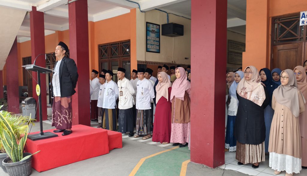 Bertindak sebagai Pembina Upacara, Dwi Guntoro, S. Pd.I, dalam sambutannya menekankan pentingnya peran santri dalam konteks modern.