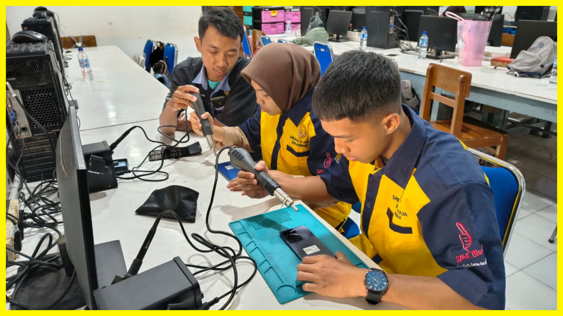 Peserta didik dilatih melakukan instalasi, perawatan, serta troubleshooting peralatan elektronik rumah tangga dan industri secara profesional.